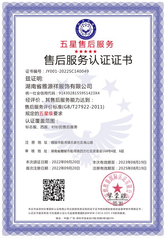 1、企業(yè)概況 湖南省雅源祥服飾有限公司地處湘贛邊境素有瓷城之稱的醴陵郊區(qū),企業(yè)創(chuàng)建于1995年,是行政執(zhí)法制服、被裝的生產(chǎn)企業(yè)。2、組織機構(gòu) 跟隨改革開放的步伐,我公司不斷發(fā)展壯大,公司董事會下設(shè)總經(jīng)理辦公室、生產(chǎn)部、技術(shù)部、質(zhì)檢部、財務(wù)部、采購部、業(yè)務(wù)部等部門,下設(shè)有流水線西服生產(chǎn)車間、標(biāo)志服生產(chǎn)車間、襯衣生產(chǎn)車間、... [更多]